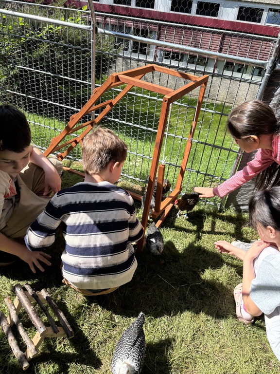 Besonders schön ist, dass unsere Schülerinnen und Schüler die Hühner regelmäßig besuchen können.
