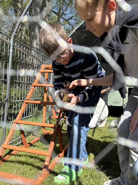 Nachdem unsere kleinen Küken vor einiger Zeit im Klassenraum aus ihren Eiern geschlüpft sind und dort behutsam aufgezogen wurden, war es nun endlich so weit: Unsere Schulhühner haben ihr neues Außengehege bezogen!