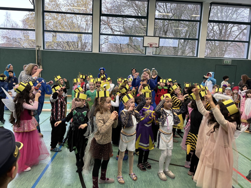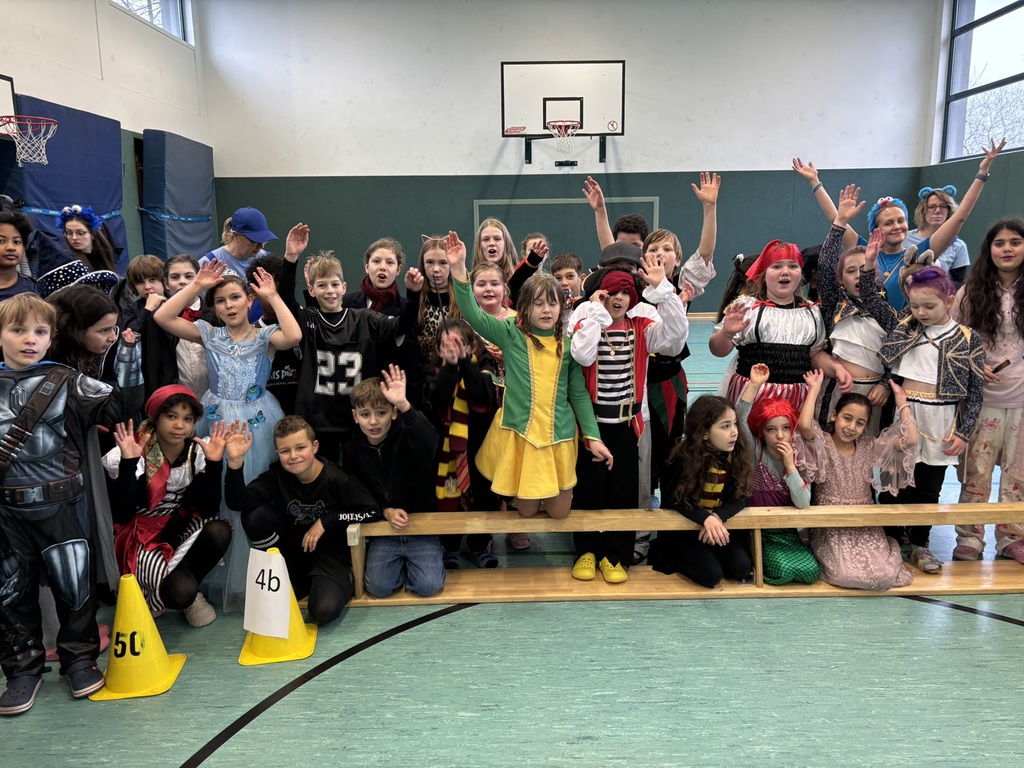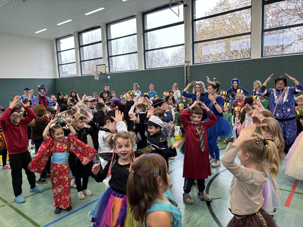 In der Turnhalle ging es fröhlich weiter: Jede Klassenstufe zeigte einen einstudierten Tanz. Es wurde viel gelacht und begeistert applaudiert. Außerdem wurde pro Klasse das schönste Kostüm gekürt und der lustigste Klassenwitz erzählt - dafür gab es einen Orden.