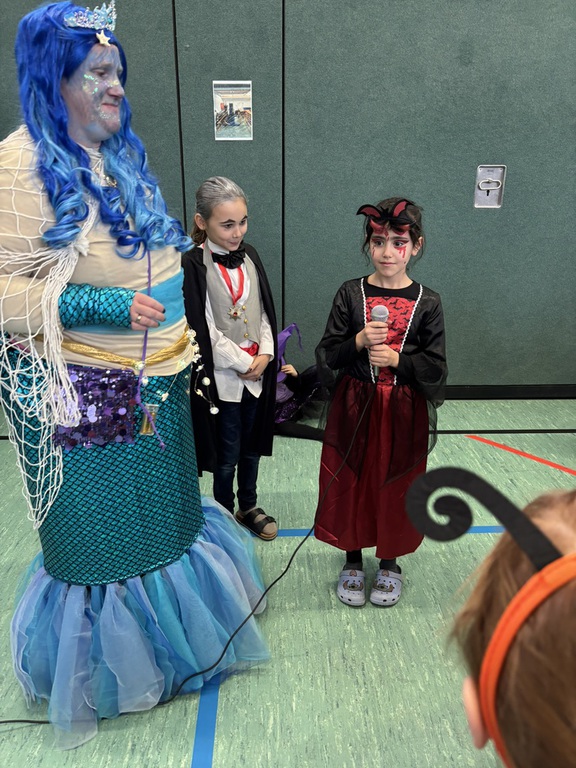 Zunächst feierte jede Klasse für sich in den Klassenräumen. Bei vielen lustigen Spielen war die Stimmung von Anfang an fröhlich. Ein besonderes Highlight in den Klassen war die Kostümpräsentation: Jedes Kind durfte sein Kostüm den Klassenkameradinnen und Klassenkameraden vorstellen. Dazu gab es ein reichhaltiges Snack-Buffet, das keine Wünsche offenließ.